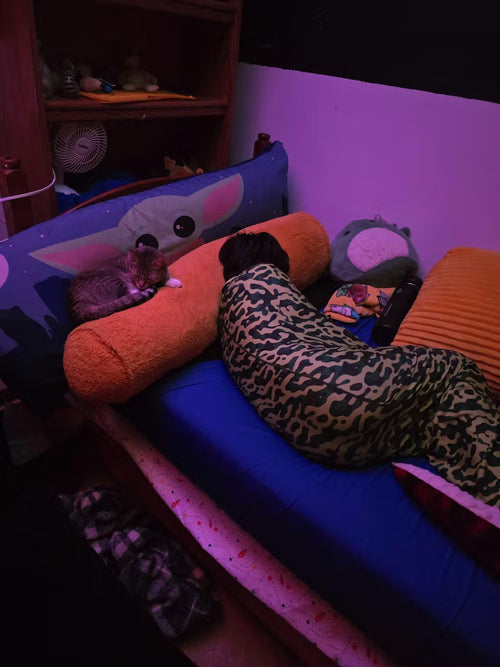 The sensation of being cuddled lowers stress and restlessness by reducing cortisol, making you feel calm and relaxed.