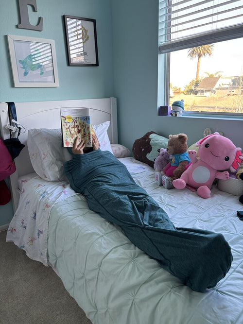 Deep touch pressure therapy is like a cozy hug that helps soothe busy minds and restless bodies, perfect for kids who need a little extra comfort to find their way to dreamland.