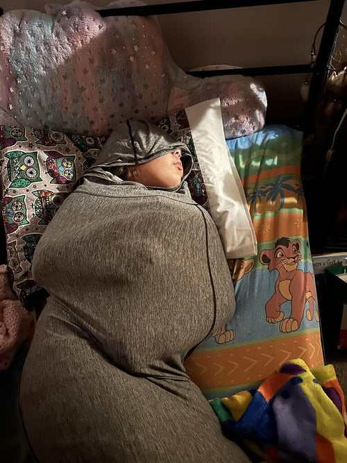 Experience the best of both worlds with our mid-length, open-leg design giving you added mobility and feet freedom. Dealing with anxiety and stress? You're not alone. Sleep Pod Mini uses Deep Touch Pressure Therapy, cocooning you in calming comfort to help enhance sleep and reduce stress. It's a breathable, lightweight alternative to weighted blankets.